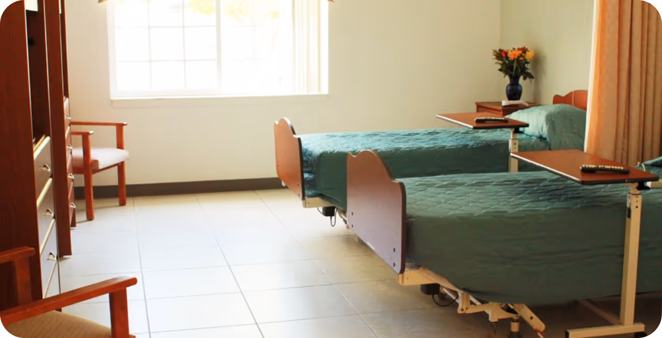 Pristine, cozy rooms with premium amenities, offering dignity and healing in a home-like setting